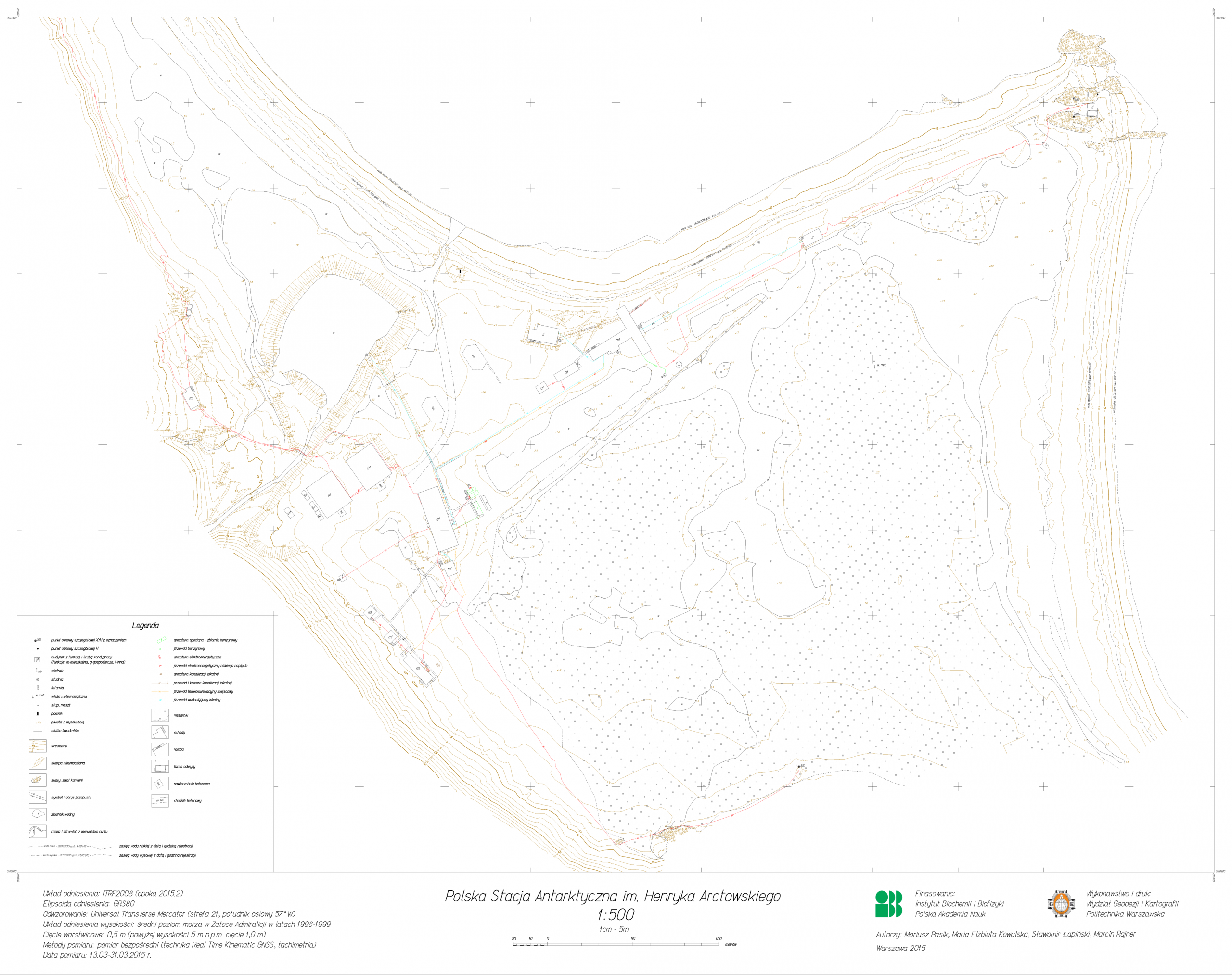 Polska Stacja Antarktyczna im. Henryka Arctowskiego – mapa zasadnicza, skala 1:500, autorzy: Mariusz Pasik, Maria Elżbieta Kowalska, Sławomir Łapiński, Marcin Rajner