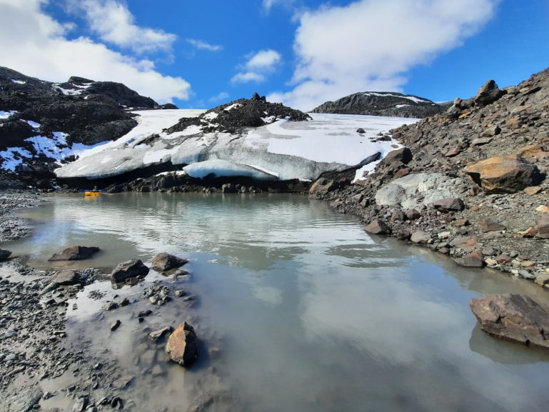 Celem wyjazdu badawczego było zebranie danych dotyczących głębokości jezior położonych na wybrzeżach Zatoki Admiralicji na Wyspie Króla Jerzego w Antarktyce Zachodniej (Fig. 1). Jest to jeden najbardziej ocieplających się obszarów Ziemi, a skutki ocieplenia są wyrazie widoczne. Topniejące lodowce odsłaniają nowy teren, który powiększa się i zmienia z roku na rok. Powstają nowe koryta strumieni oraz nowe jeziora. Ze względu na dynamiczne zmiany krajobrazu, ważna jest dokumentacja aktualnego stanu, która regularnie wykonywana umożliwi zmierzenie tempa zmian w dłuższym okresie czasu. W czasie wyjazdu badawczego do Polskiej Stacji Antarktycznej im. Henryka Arctowskiego, położonej na zachodnim brzegu Zatoki Admiracji, wykonano pomiar głębokości 46 jezior polodowcowych. Najstarsze ze zmierzonych jezior mają ok. 200 lat, zaś najmłodsze zaledwie kilka lat. Zmierzono również głębokość w jeziorze Petrela położonym w kraterze na pobliskiej Wyspie Pingwiniej, które powstało na skutek erupcji wulkanu w 1905 r. Pomiary wykonano echosondą, mocowaną do dmuchanego kajaka (Fig. 1). Są to jeziora o niewielkiej powierzchni 0.004 – 4.5 ha, a ich głębokość maksymalna wynosi 0.4 – 21.9 m.